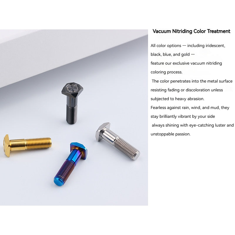 这些螺丝采用S 级 TC4 钛合金精制而成,经过严格筛选,符合 S-PARTS 标准,平均抗拉强度超过1050MPa ,远超行业标准。